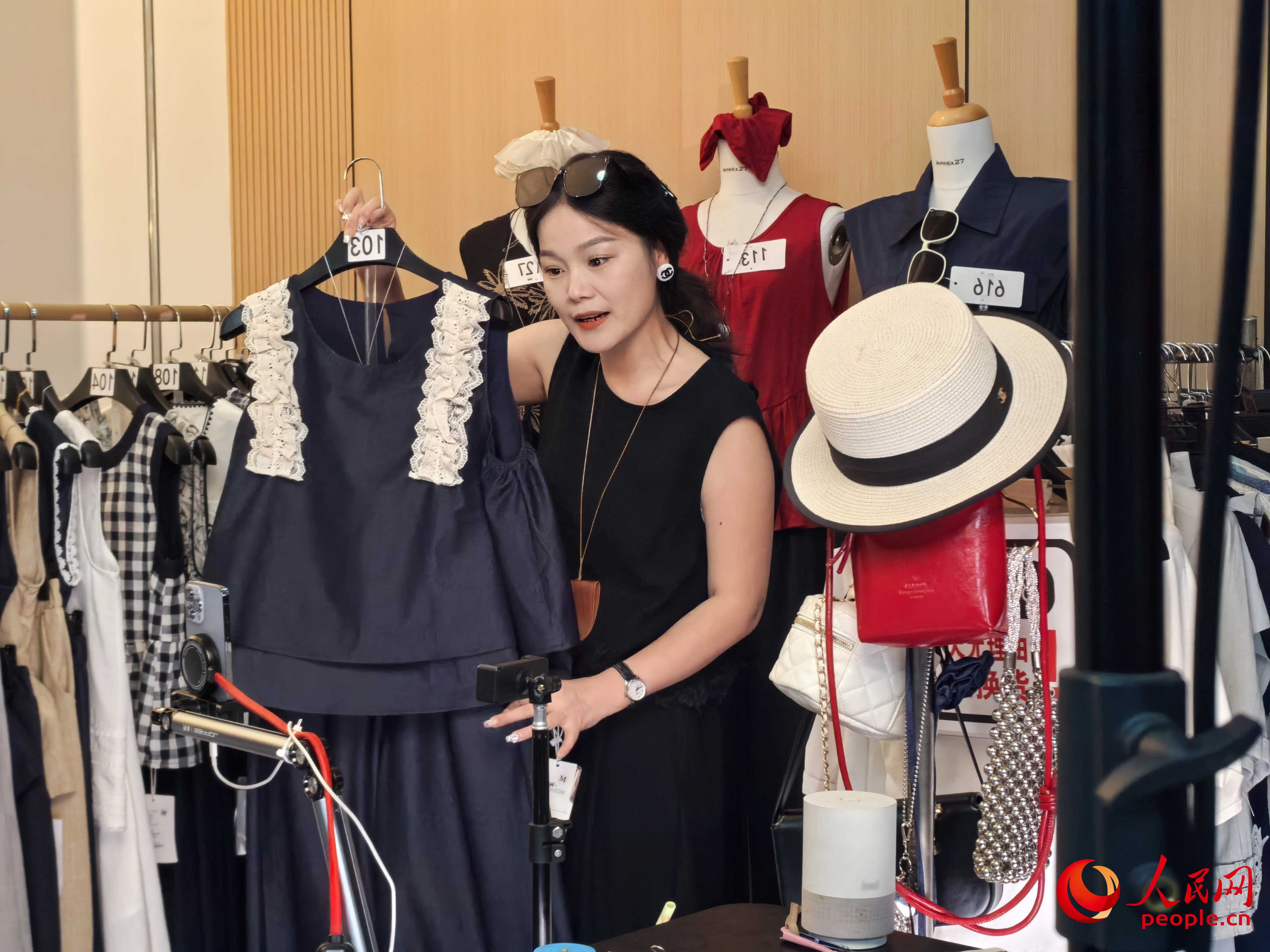 “我们要让天门服装从代工贴牌走向品牌出海。”品牌馆负责人程朦表示。这位19岁外出打拼的“服二代”,2020年带着十余年行业经验返乡,先后创立了岳口服装电商产业园、天门电商文创城,推动建设海外仓,打通“天门衣尚”的出海渠道。