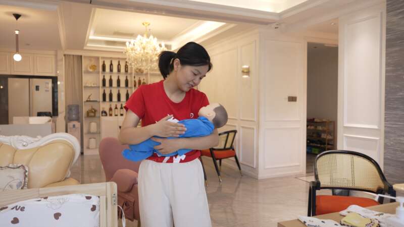 在深圳轻喜到家科技有限公司的荣誉墙上,客户送给卢珊珊的锦旗占据了不小的面积。毕业于北京师范大学珠海分校家政学专业,卢珊珊从一线保姆做起,已在家政行业深耕了11年,目前成为深圳轻喜到家科技有限公司育婴早教讲师,这次参加国赛育婴项目(国赛精选)比赛。