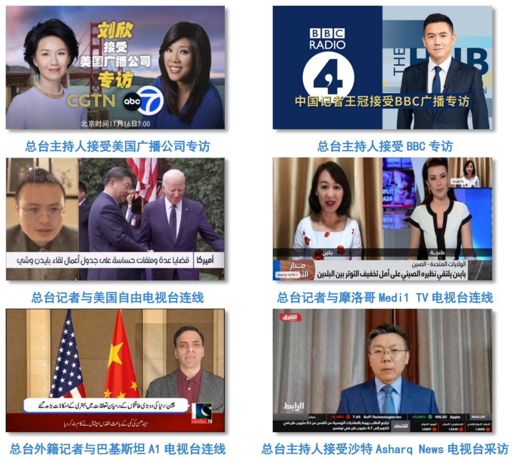 有力发声。总台多语种主持人、记者应邀与ABC、美国Scripps News电视台、美国自由电视台、BBC、俄罗斯卫星通讯社、沙特新闻电视台、法国蒙特卡洛电台、南非第五频道、摩洛哥Medi1 TV电视台、越南数字电视台、印度电讯电视台、泰国公共电视台、土耳其FIL电视台、巴基斯坦国家电视台、巴基斯坦A1电视台、肯尼亚PPP电视台、刚果(金)Mishapi电视台、孟加拉国RTV电视台等海外主流媒体连线余次。在欧洲时事杂志《现代外交》、印尼发行量最大的英文报纸《雅加达邮报》、埃及时政报纸《宪法报》、巴基斯坦主流媒体《每日邮报》、土耳其主流数字媒体《哈里吉》、阿尔及利亚《祖国报》、伊拉克阿杰纳丁通讯社、摩洛哥《回声报》等海外主流媒体发表文章超100篇次,第一时间传递中美元首会晤重要共识,面向对象国受众鲜明宣介习主席关于中美关系的重要论述。